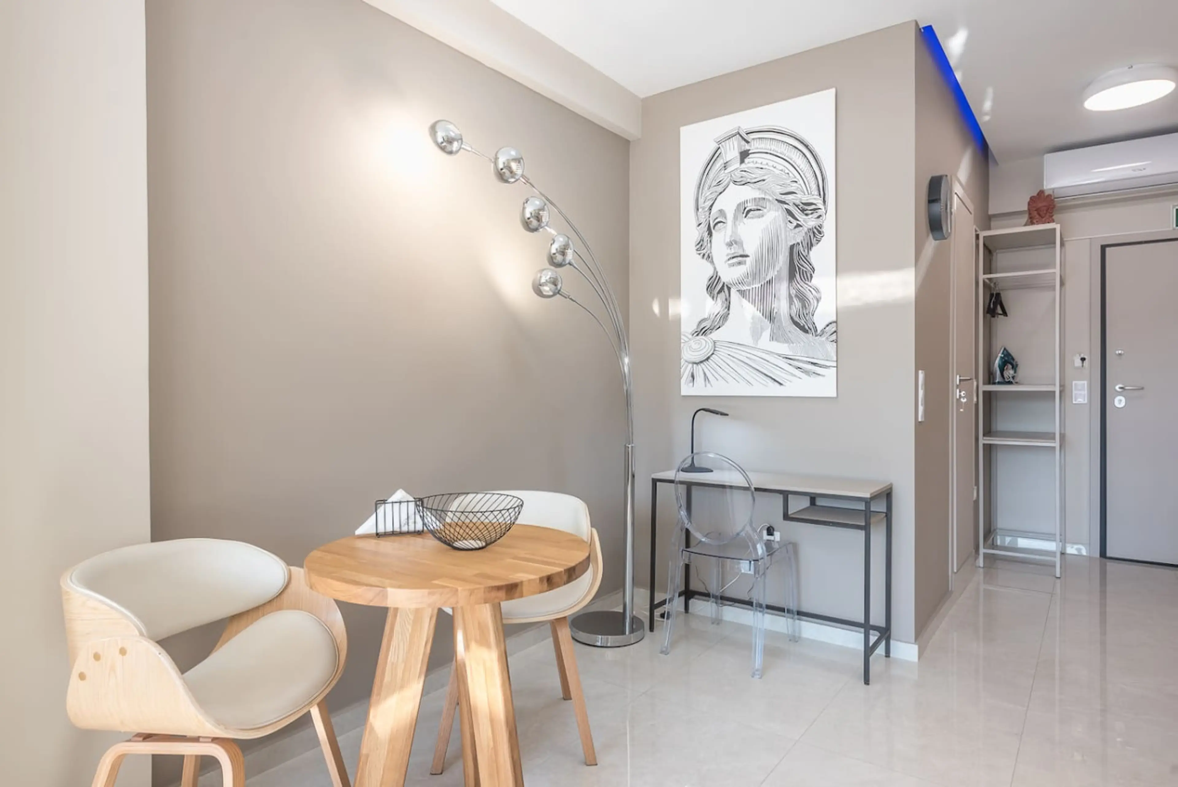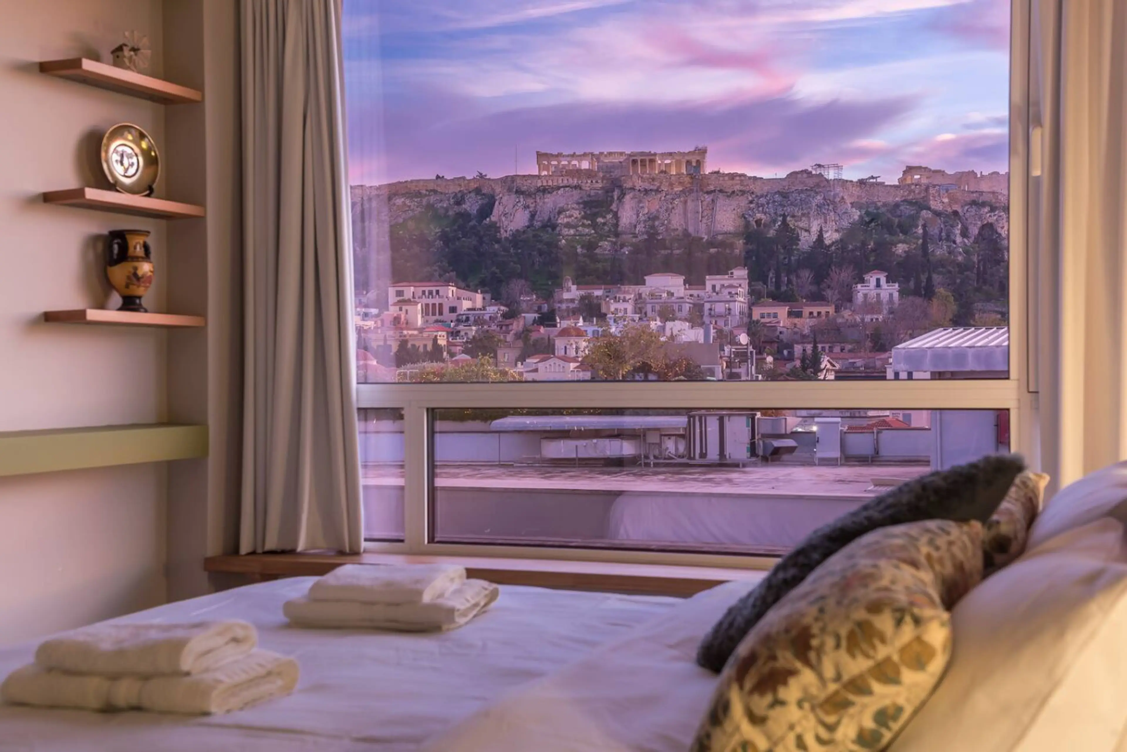 Wake up with the Acropolis, fall asleep under its lights. A stylish 5th-floor studio on Ermou Street in the heart of Monastiraki — just one minute from Monastiraki metro (blue line) with a direct route to the Airport and Piraeus Port. Perfect for two. This studio is all about mood, light, and locat...